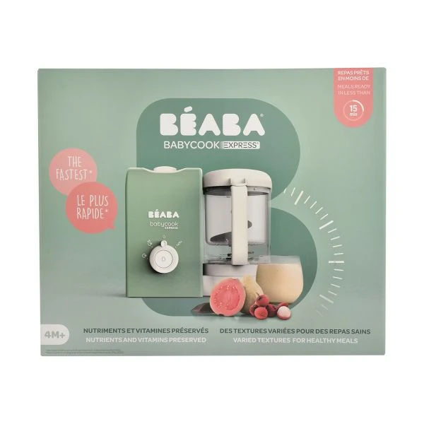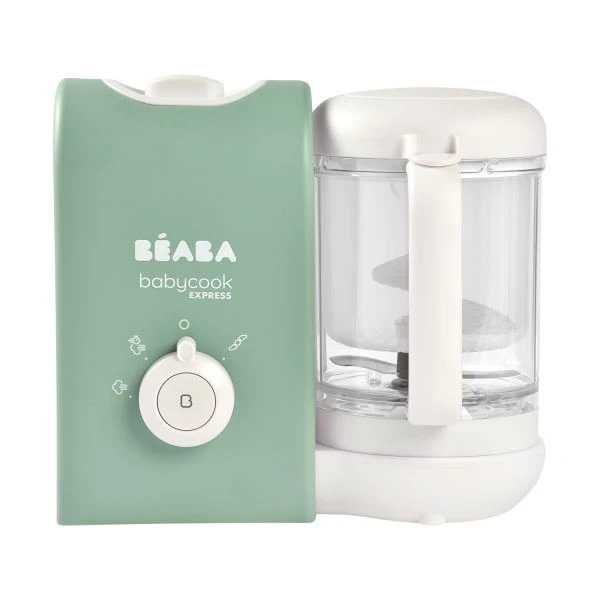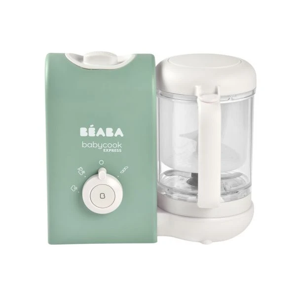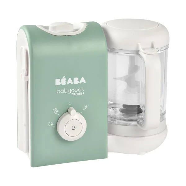 De Beaba Babycook® Express – Sage Green is handig in gebruik en maakt het bereiden van de maaltijd veel makkelijker met de vele functies. De Babycook® Express kan mixen, stomen, ontdooien en verwarmen en zorgt ervoor dat alle vitamines en mineralen bewaard blijven. Daarnaast is de Babycook® Express voorzien van 2 verschillende kookstanden: Express cooking en Eco cooking. De Babycook® Express is met één hand te bedienen zodat je ondertussen je kindje vast kunt houden. Dankzij de extra grote kom en het afgeschuinde mes zijn grotere hoeveelheden geen enkel probleem. De Babycook® Express geeft een signaal bij het einde van de kooktijd en schakelt vervolgens automatisch uit. Verder wordt de babycook® geleverd met pureerdeksel, spatel en kookboekje.