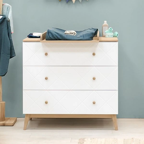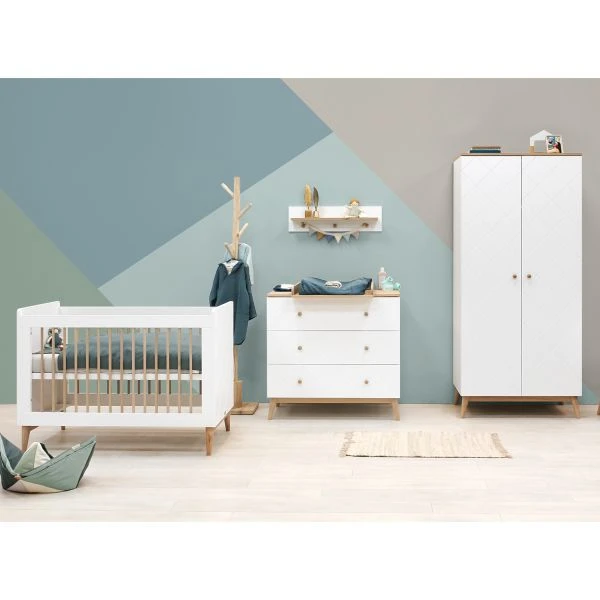 De Bopita Paris Babykamer Wit / Eiken kenmerkt zich door de zichtbare diagonale groeven en eiken accenten. Door de neutrale kleuren en vormen is deze babykamer geschikt voor zowel jongens als meiden. Het ledikant is eenvoudig in hoogte verstelbaar en wordt geleverd exclusief matras. Verder beschikt de Bopita Paris commode over drie ruime lades. Daarnaast zijn de meubels van de Bopita Paris serie gemaakt van hoogwaardig MDF en eiken materiaal.