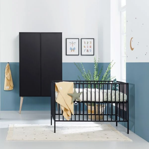 De Europe Baby Evy Babykamer Zwart is een stijlvolle en praktische babykamer. Door de schuine pootjes heeft de babykamer een moderne, Scandinavische uitstraling. De commode en kast beschikken beide over voldoende ruimte voor alle spulletjes van je kindje. De meubels van de babykamer zijn gemaakt van hoogwaardig materiaal en voldoen aan de Europese veiligheidseisen.