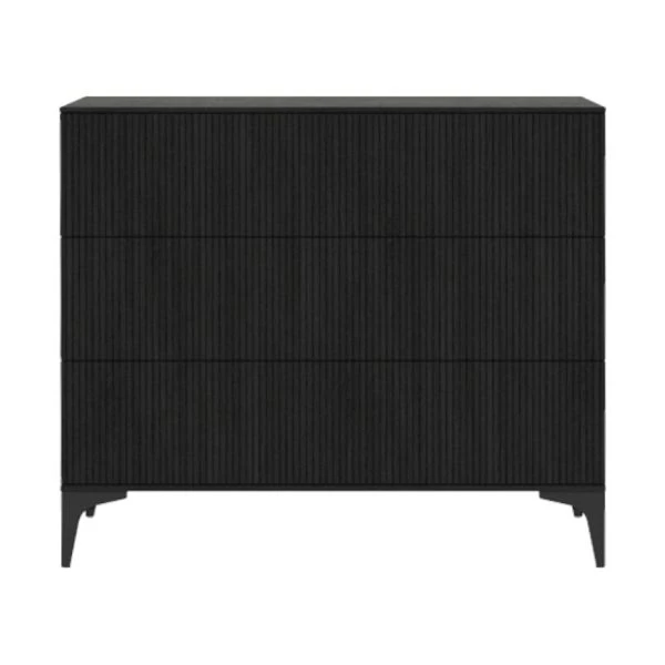 De Kidsmill Levi Commode Zwart Eiken kenmerkt zich door de combinatie van een landelijke en tegelijkertijd ook strakke stijl. De commode is gemaakt van hoogwaardig MDF en plaatmateriaal gecombineerd met een echte eiken fineerlaag. Daarnaast beschikt de commode over voldoende opbergruimte. De verfijnde groeven in de fronten, samen met de metalen zwarte pootjes geven de commode een frisse moderne look. Verder zijn de lades van de commode voorzien van een push-to-open en een soft-close systeem