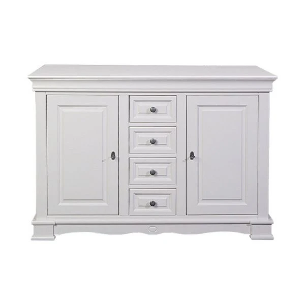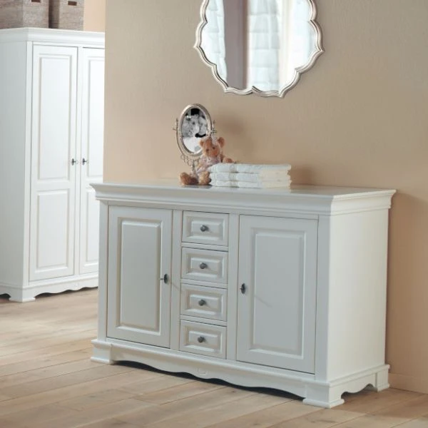 Een exclusieve, klassieke commode voorzien van 4 laden en twee deuren. De commode biedt voldoende ruimte om de spullen van je kleine te kunnen opbergen. Het ruime commodeblad vereenvoudigd het verschonen en is geschikt om te gebruiken in combinatie met een commodekussen.