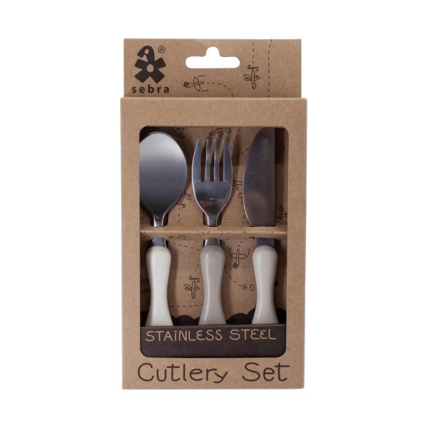 Met de Sebra Roestvrijstaal Bestekset Moonlight Beige kan je kindje zelfstandig leren eten. De set bestaat uit een vork, lepel en mes en heeft is makkelijk vast te houden met kleine handjes. Het bestek is gemaakt van hoogwaardig en duurzaam materiaal, zodat het veel gebruikt kan worden. Daarnaast beschikt het bestek over een vrolijke kleurtjes en is het vaatwasmachinebestendig.