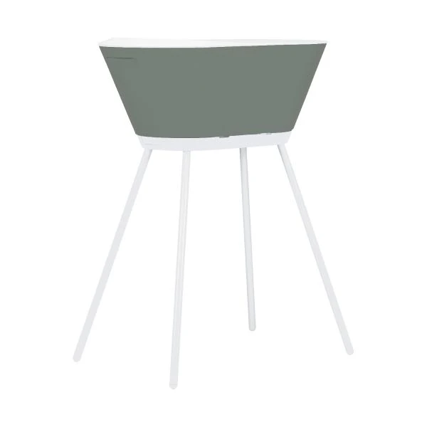 De We-Too 4-Delige Badset White / Dark Green bestaat uit een bad, badstandaard en een badzitje waarmee je het badje al vanaf de geboorte kan gebruiken. Zodra je kindje zelfstandig kan blijven zitten is het badzitje niet meer nodig. Het stijlvolle badje is voorzien van een dubbele wand waarmee de warmte net iets langer wordt vastgehouden en je kindje optimaal kan genieten van zijn of haar badtijd. Bovendien is het badje extra groot en kan daarom langer worden gebruikt. Je kan het badje zowel op de grond als op de We-Too badstandaard gebruiken. De badstandaard bestaat uit een base en metalen poten die zijn voorzien van kunststof dopjes. Het badje is eenvoudig op de badstandaard te monteren en zorgt ervoor dat je je kindje op een aangename hoogte in bad kan doen. Verder voldoet de We-Too badset aan de meest strenge veiligheidseisen en kan worden gebruikt totdat je kindje zelf kan gaan staan. De We -Too badjes zijn voorzien van een warmtegevoelige badstop. De badstop reageert op de temperatuur van het water. Bij het afkoelen van het water (kouder dan 35ยฐ) verandert de kleur van de badstop naar de kleur blauw en wanneer de temperatuur van het water warmer is dan 35ยฐ kleurt de badstop wit. Een groot voordeel van deze badstop is dat je snel kunt zien wanneer het water te ver is afgekoeld voor het kind.